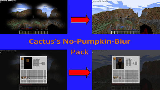 get rid of the annoying pumpkin blur with this resource pack you can wear pumpkin head with no annoying blur which makes fight endermans and travel in the end with no problems also it will help you when you're fighting the ender dragon by stopping any sudden attack from endermans
